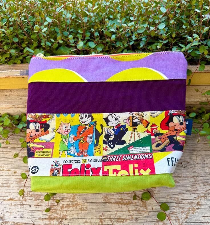 🎬ヴィンテージアメコミ柄×カラーブロックポーチ